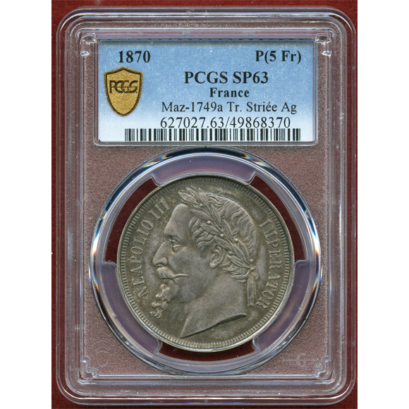 ナポレオン3世、月桂冠の試作(ESSAI)5フラン銀貨。