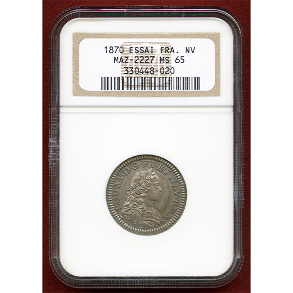 フランスの1/3エキュ銀貨の試作(ESSAI)リストライク貨です。