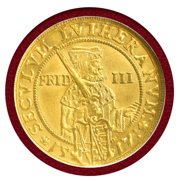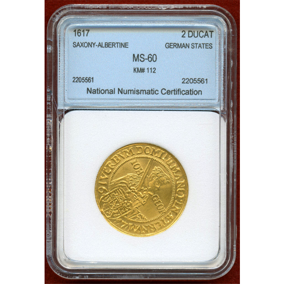 ドイツ ザクセン 1617年 2ダカット金貨 九十五ヶ条の論題100周年記念 NNC MS60