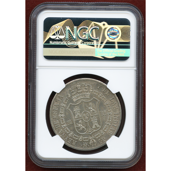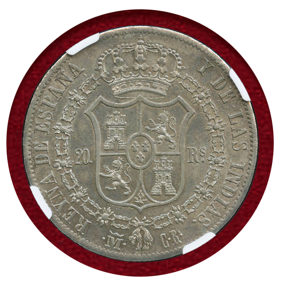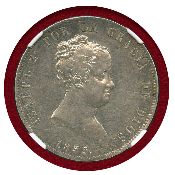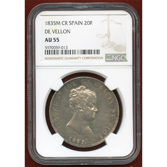 イサベル2世の希少な幼年期(3歳ころ)の20レアル銀貨です。