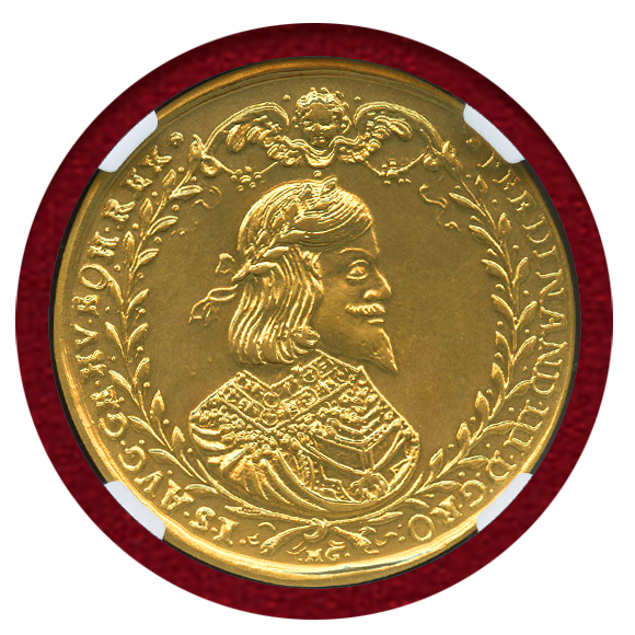 肖像はハプスブルク家出身の神聖ローマ皇帝(在位:1637年 - 1657年)であったフェルディナンド3世。三十年戦争末期に皇帝軍司令官を務め、1648年のヴェストファーレン条約締結により、帝国とハプスブルク家の勢力が弱まる中で終戦をもたらしました。
