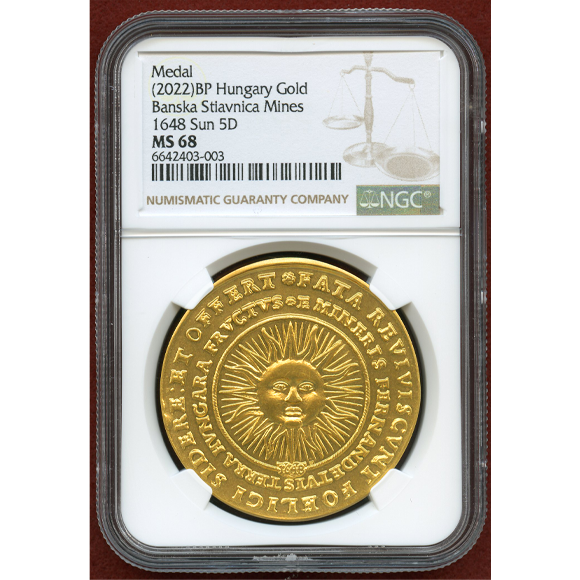 本メダルは1648年の5ダカットを2022年にリストライクした5ダカット金メダルです。