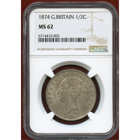 イギリス 1874年 1/2クラウン 銀貨 ヴィクトリア ヤングヘッド NGC MS62