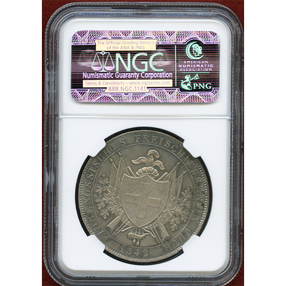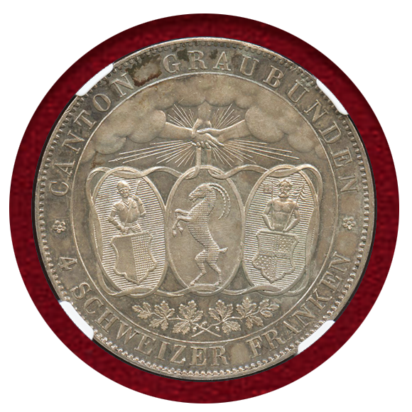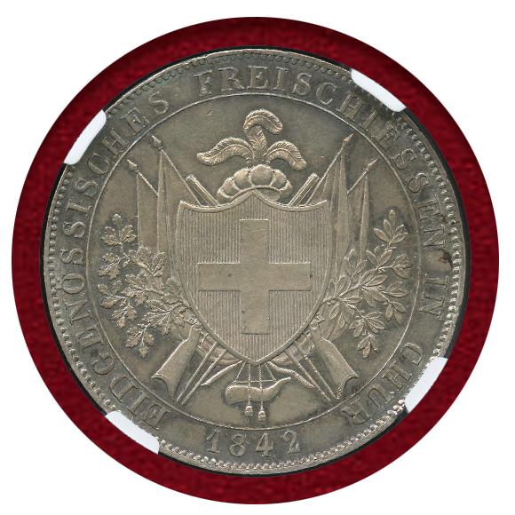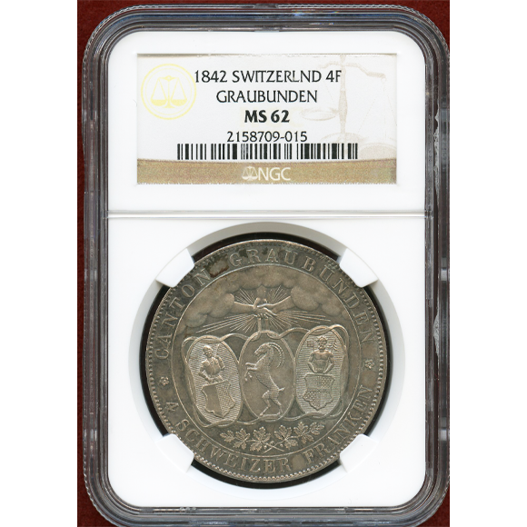スイス 連邦射撃祭 1842年 4フランケン銀貨 グラウビュンデン NGC MS62
