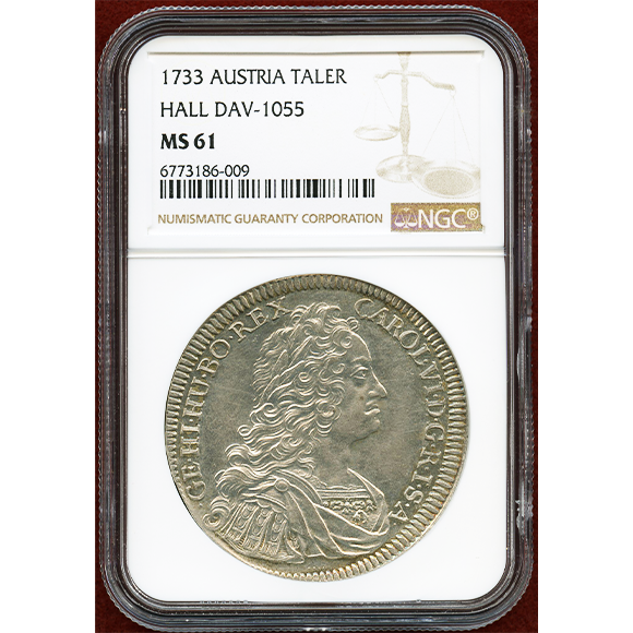 神聖ローマ皇帝のカール6世のターラー銀貨。HALLミント。