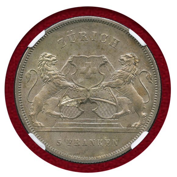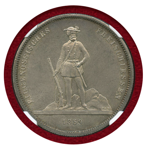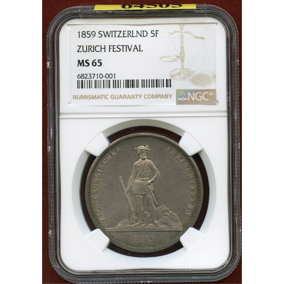スイス 連邦射撃祭 1859年 5フラン銀貨 チューリッヒ NGC MS65