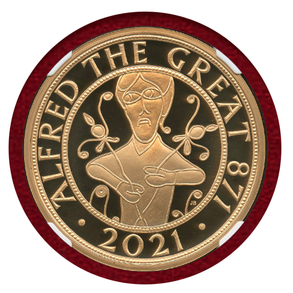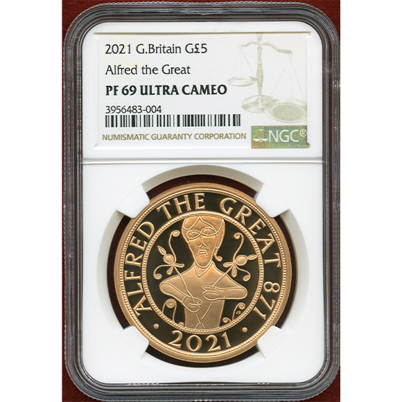 アルフレッド大王が871年に即位してから、1150周年を記念して発行された5ポンド金貨です。