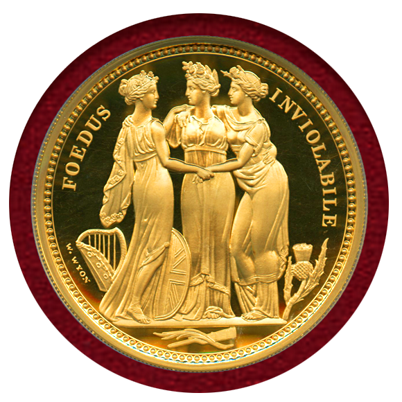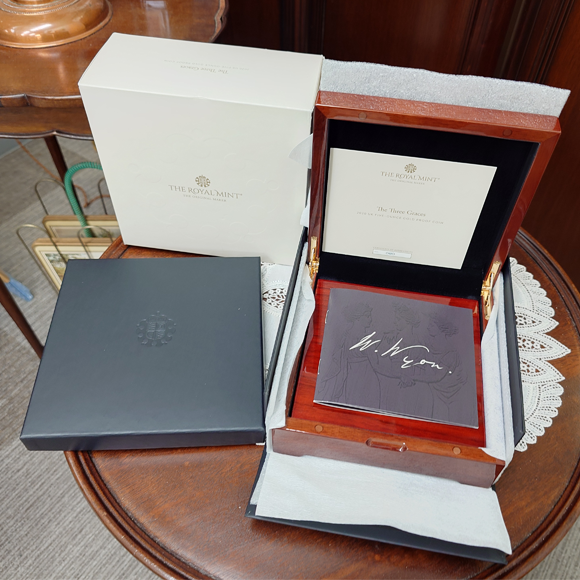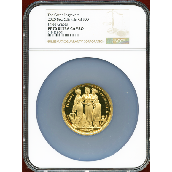 名匠ウィリアムワイオン作の中でも、極めて評価が高い、通称スリーグレイセスのデザインを忠実に再現した、5オンスの大型金貨です。