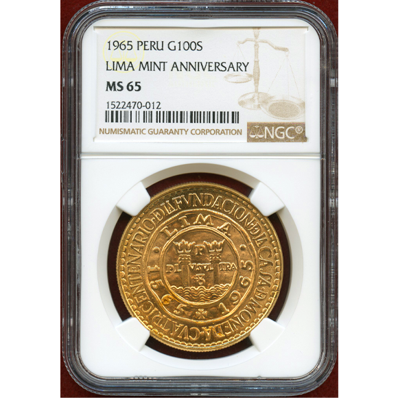 ペルー 1965年 100ソル 金貨 リマ造幣局400周年記念 NGC MS65
