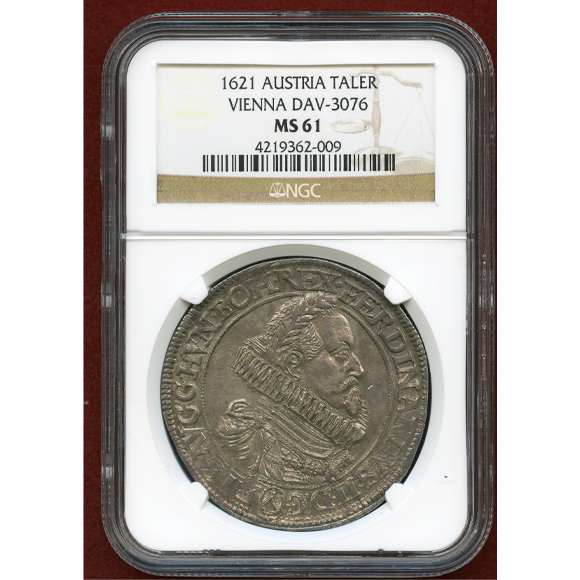 ハプスブルク家オーストリア大公出身、神聖ローマ皇帝のフェルディナンド2世のターラー銀貨です。
