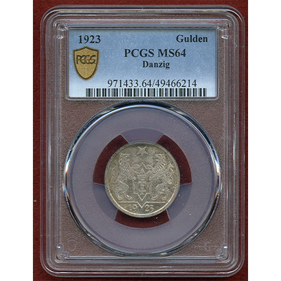 自由都市ダンツィヒ 1923年 グルデン 銀貨 NGC MS64