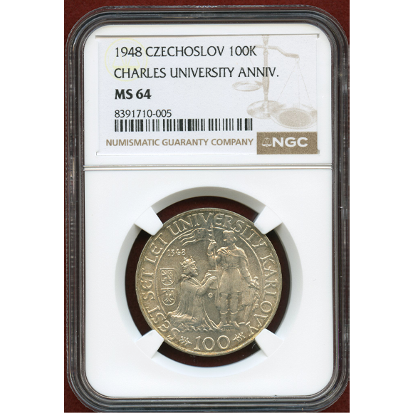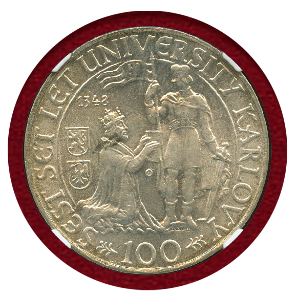表面は皇帝カール4世がヴァーツラフ公像の前に跪いている様子が描かれています。この図案は大学の校章となっています。