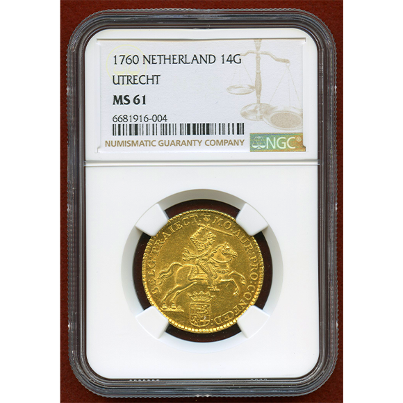 馬上の騎士が描かれているユトレヒトミントの14グルデン金貨です。