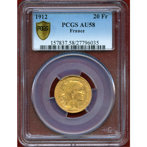 フランス 1912年 20フラン 金貨 マリアンヌ PCGS AU58