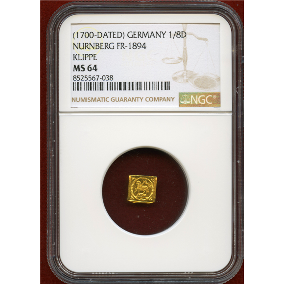 ドイツ 1700N 1/8 ラムダカット 金貨 神の子羊 クリッペ NGC MS64