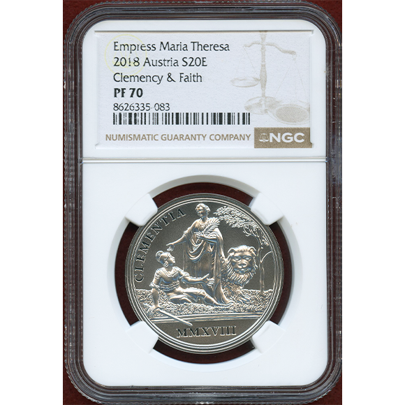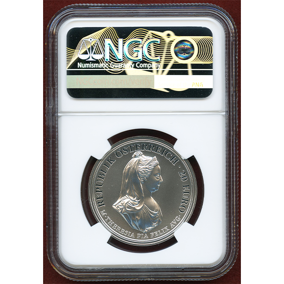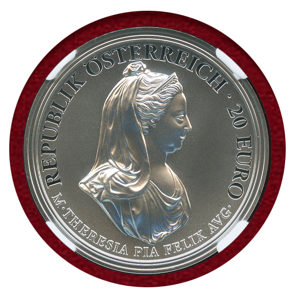 マリアテレジアの生誕 300周年を記念して発行された銀貨です。