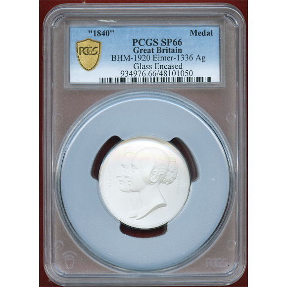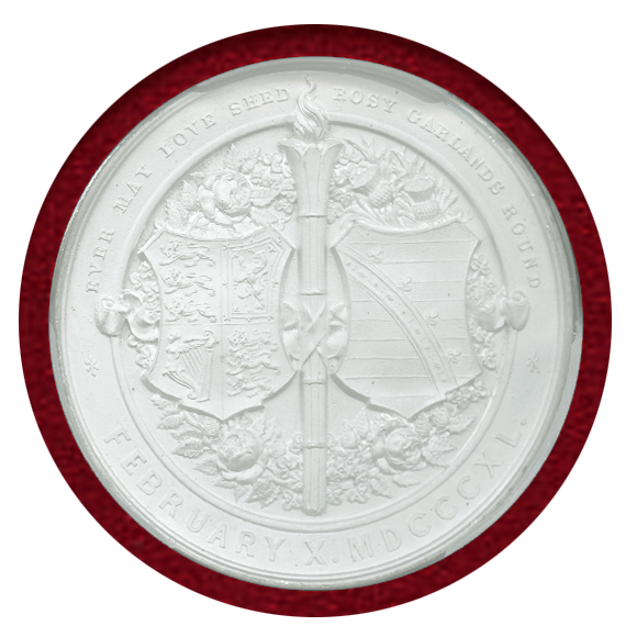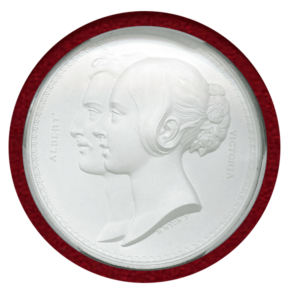 ヴィクトリア女王とザクセン=コーブルク=ゴータ公アルバートとの結婚を祝して製作されたメダル。Benjamin Wyon作。
