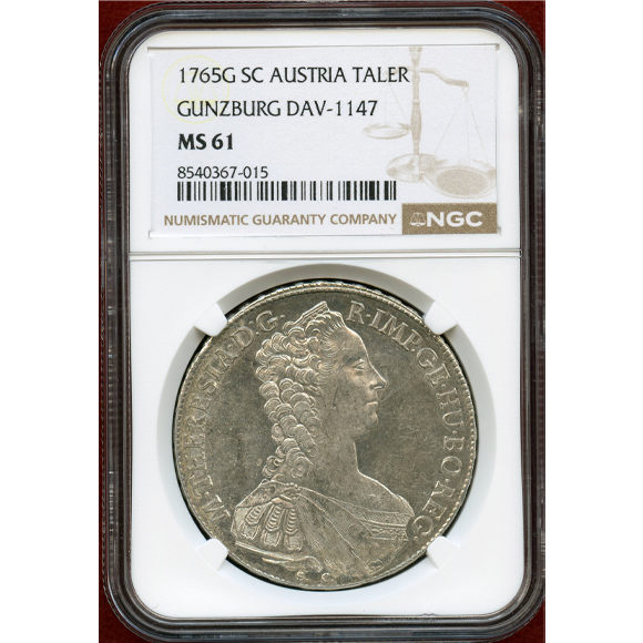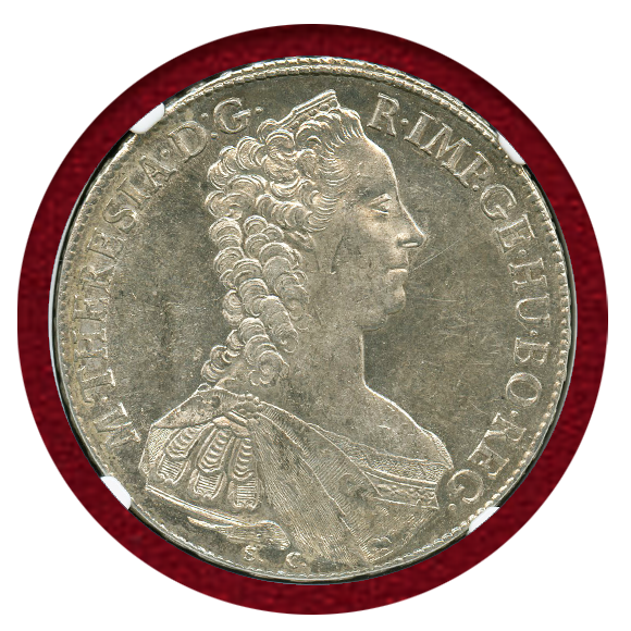 テレジアのターラー銀貨はヨーロッパ全土で実際に使用されたため、良い状態の物が殆ど残っていませんが、当コインはMS61で状態も良く、フィールドに艶もあり美しい1枚と言えます。