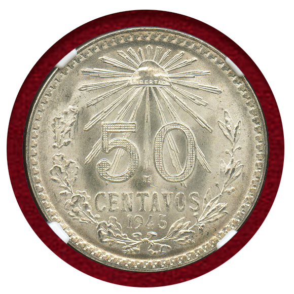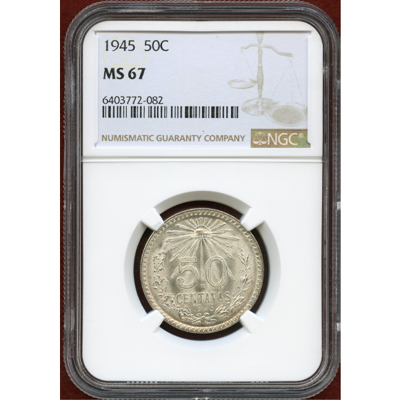 メキシコ 1945年 50センタボ銀貨 NGC MS67