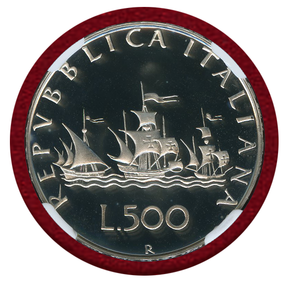 イタリア 1985R 500リレ 銀貨 コロンブスの船 NGC PF69UC