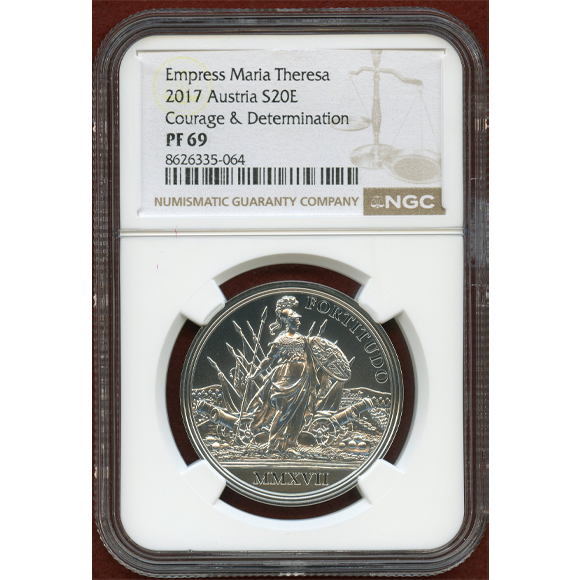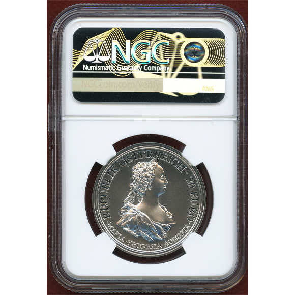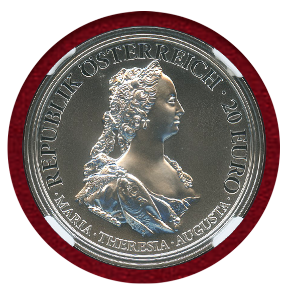 マリアテレジアの生誕 300周年を記念して発行された銀貨です。