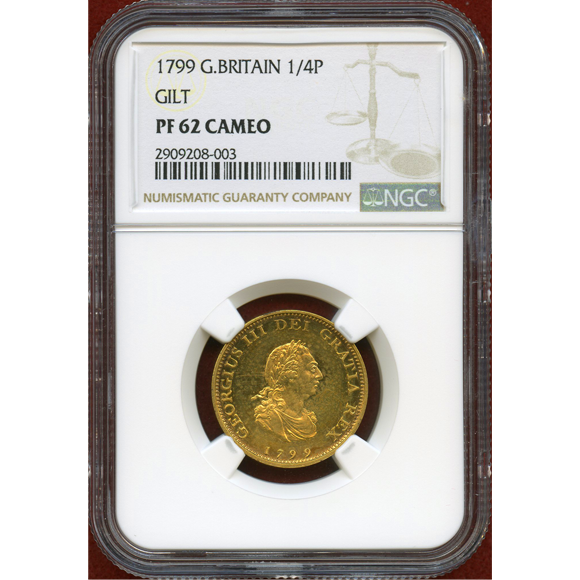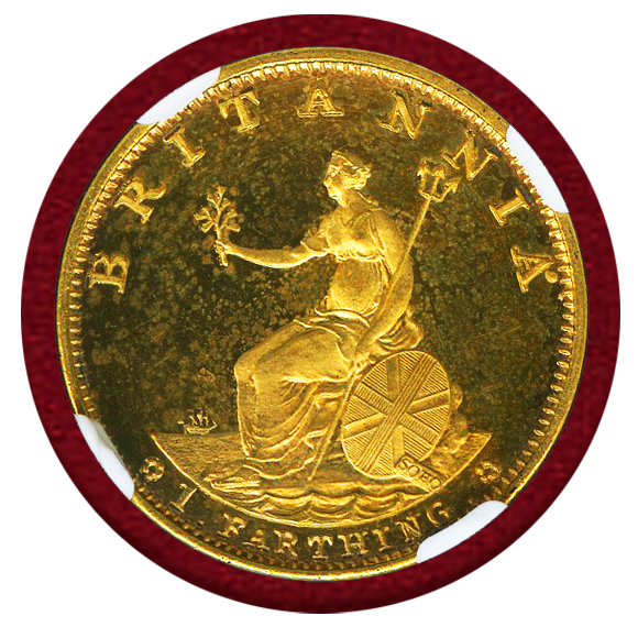 ジョージ3世と女神ブリタニアのプルーフ1/4ペニー(ファーシング)銅貨です。