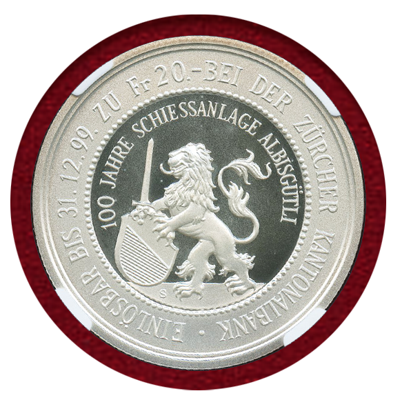 スイス 現代射撃祭 1999年 20フラン 銀貨 センテニアル NGC PF67UC